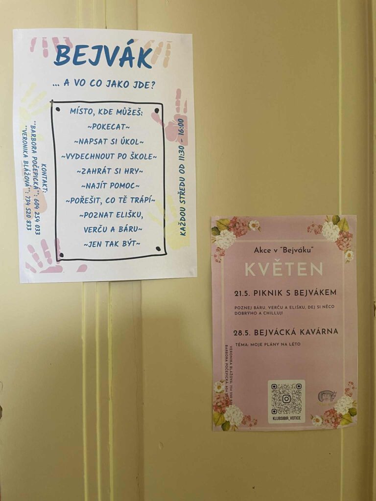 Naše organizace již delší dobu úspěšně spolupracuje se základní školou v Jankově, tak nám přišlo vhodné odstartovat terénní klub na této škole. A tak se zrodil Bejvák – terénní klubu naší organizace přímo v ZŠ Jankov. Ráno 21. 5. prošly naše pracovnice všemi třídami v ZŠ a seznámily žáky s tím, co Bejvák je a s čím se tam na naše kolegyně mohou obracet. První odpoledne, kdy se Bejvák ve vyčleněné místnosti otevřel, jej přišlo navštívit hned 12 dětí. A nepřišly jen za hrou, která je dobrý prostředek k rozvinutí rozhovoru. Pracovnice byly překvapené, že děti rovnou začaly řešit, co je trápí.