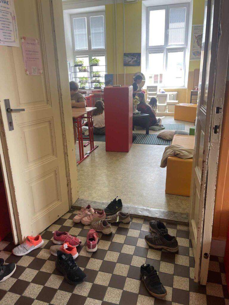 V půlce roku 2024 jsme však oficiálně registrovali terénní formu klubu Sibiř, a to znamená, že můžeme podpořit děti a mládež nejen ve votickém klubu, ale i na místech, kde se přirozeně setkávají. Při takzvané depistáži (tedy cílenému vyhledávání ohrožených dětí) jsme zjistili, že děti jsou často zavřené doma v online prostoru a tak náš šikovný tým sociálních pracovnic vymyslel, že bychom mohli otevřít terénní formu nízkoprahového klubu přímo ve škole.